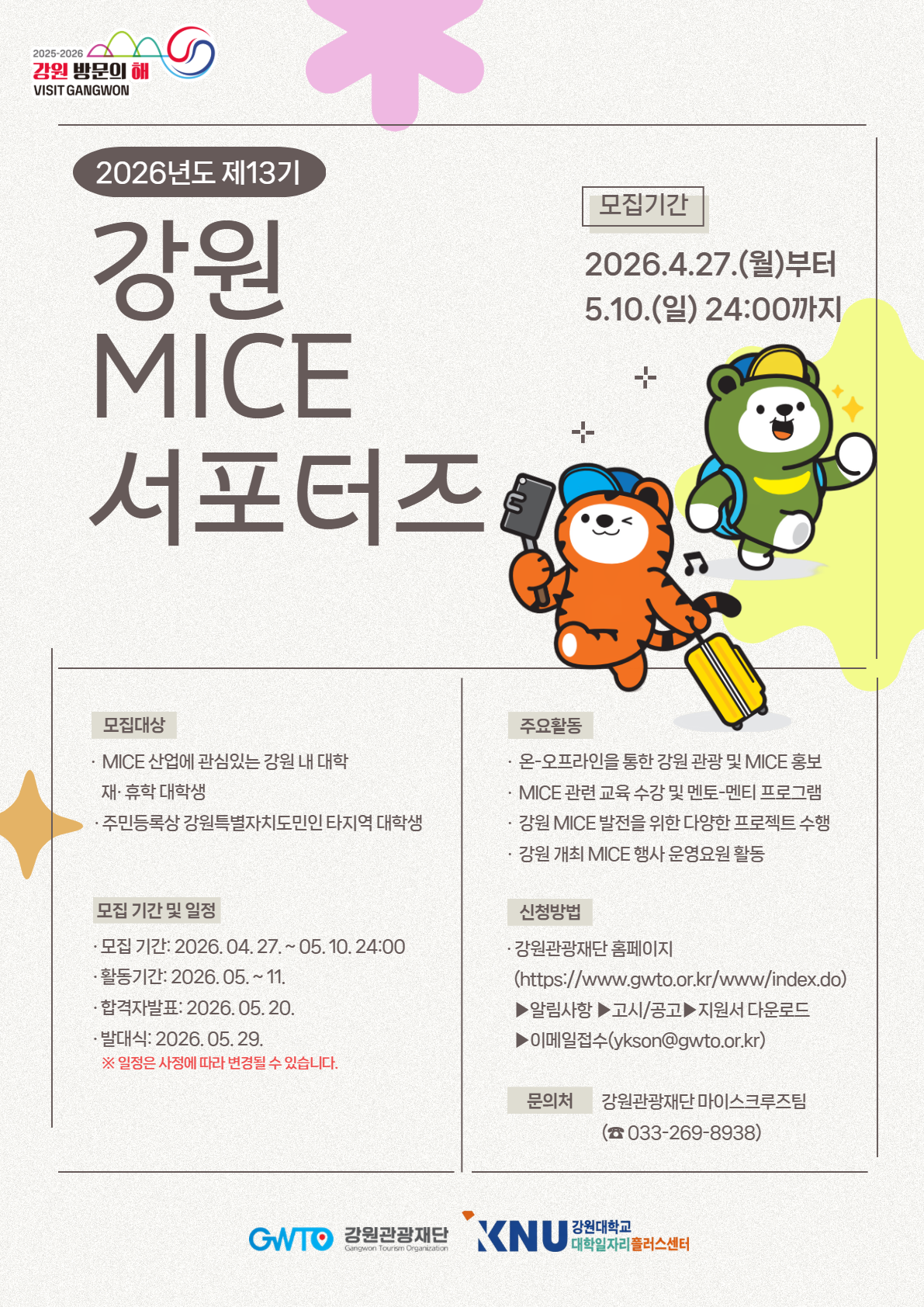 | 「2026년도 제13기 강원 MICE 서포터즈」 모집 공고 | |