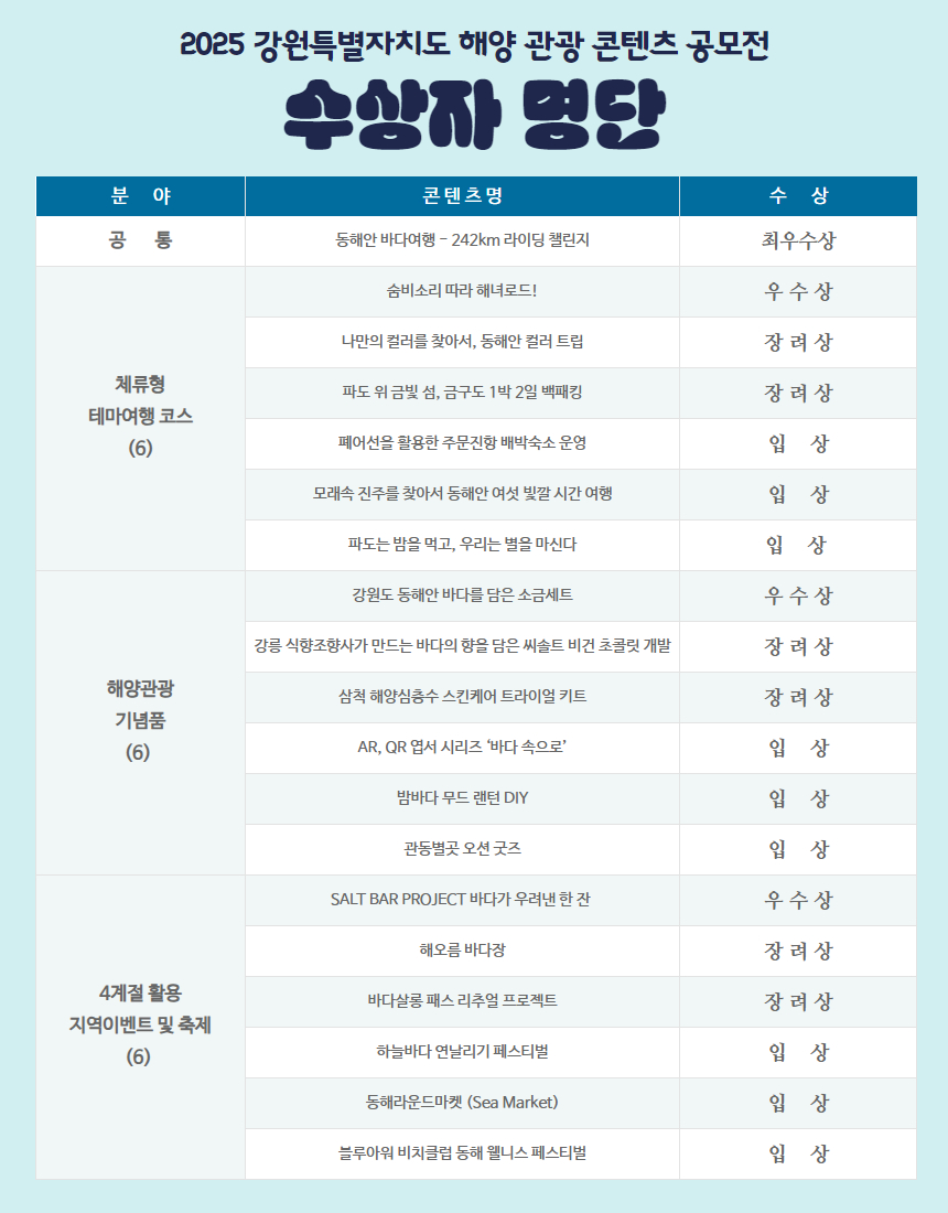 | 2025년 강원 해양 관광 콘텐츠 공모전, 총 101건 접수 | |